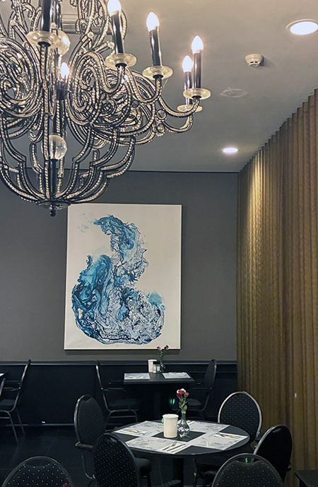 “Su bir elementten çok daha fazlasıdır” diyerek sanat anlayışını özetleyen Yılmaz, geliştirdiği teknikle suyun hareketini, rengini ve akışkanlığını soyut bir anlatıma dönüştürüyor.